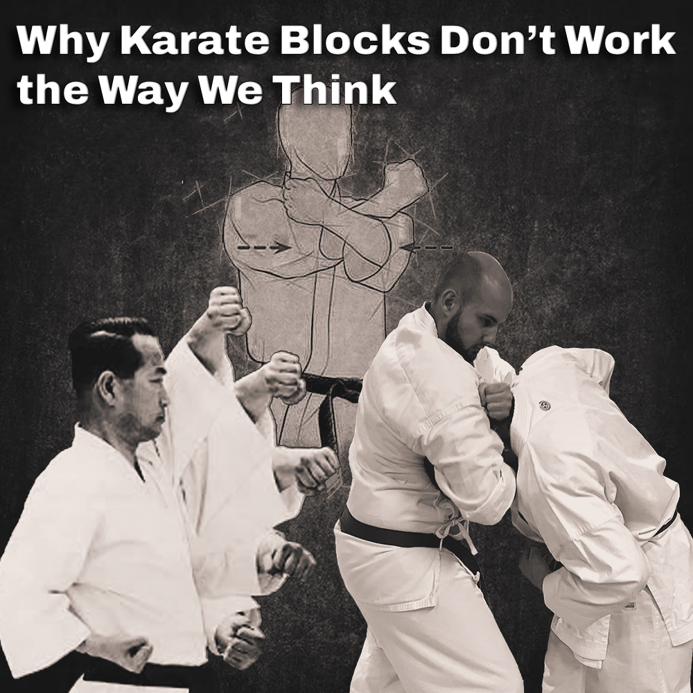 Look again at movements like age-uke, soto-uke, or gedan-barai, but forget the idea that they are meant to meet a punch in mid-air from a long distance away.